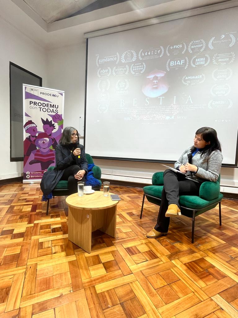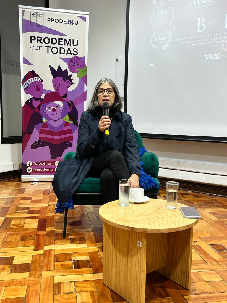 Con éxito se llevó a cabo la primera jornada del Ciclo “A 50 años: Cine, mujeres y conversación”, el jueves pasado, en la sede central de Prodemu, donde se exhibió el cortometraje “Bestia”, nominado a los premios Oscar 2021. En la primera de cuatro jornadas contamos con la presencia de la periodista e investigadora Nancy Guzmán, quien participó del conversatorio posterior. Ella es la autora del libro “Ingrid Olderock: la mujer de los perros”, que reconstruye la vida de la ex carabinera y ex agente de la DINA, texto en el cual se inspira la cinta.