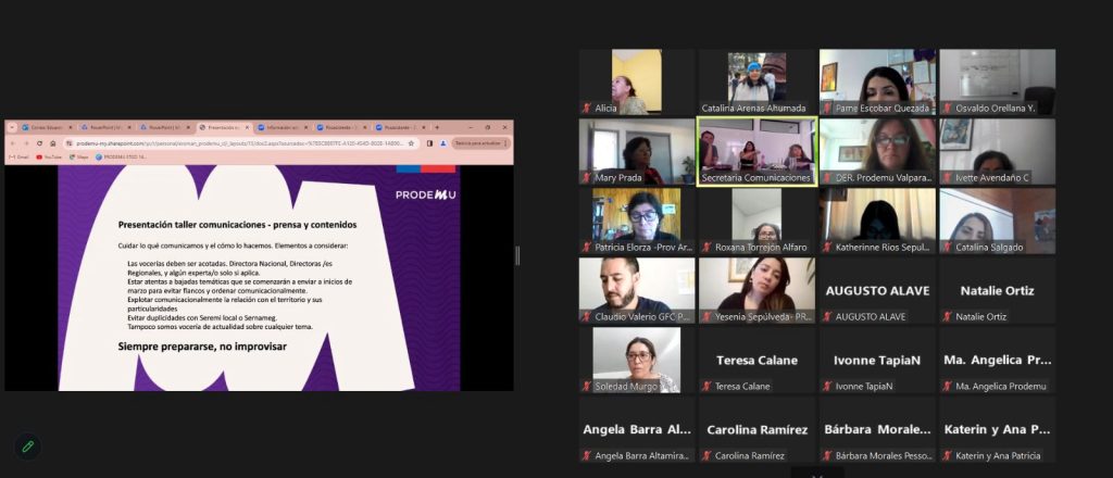 Era una deuda pendiente con las directoras regionales y los equipos de Prodemu y cumplimos. El miércoles 24, jueves 25 y martes 30 de enero, se llevó a cabo, vía online, la Primera Jornada Nacional de Capacitación de Comunicaciones destinado a fortalecer el trabajo con los equipos regionales y relevar todo lo que ellos realizan en sus territorios.