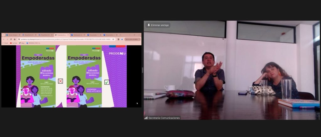 De esta manera, la dirección nacional de comunicaciones de Prodemu preparó un taller para exponer el trabajo que ellos ejecutan y para comentarles aspectos básicos, pero fundamentales a los y las trabajadoras de Arica a Punta Arenas.