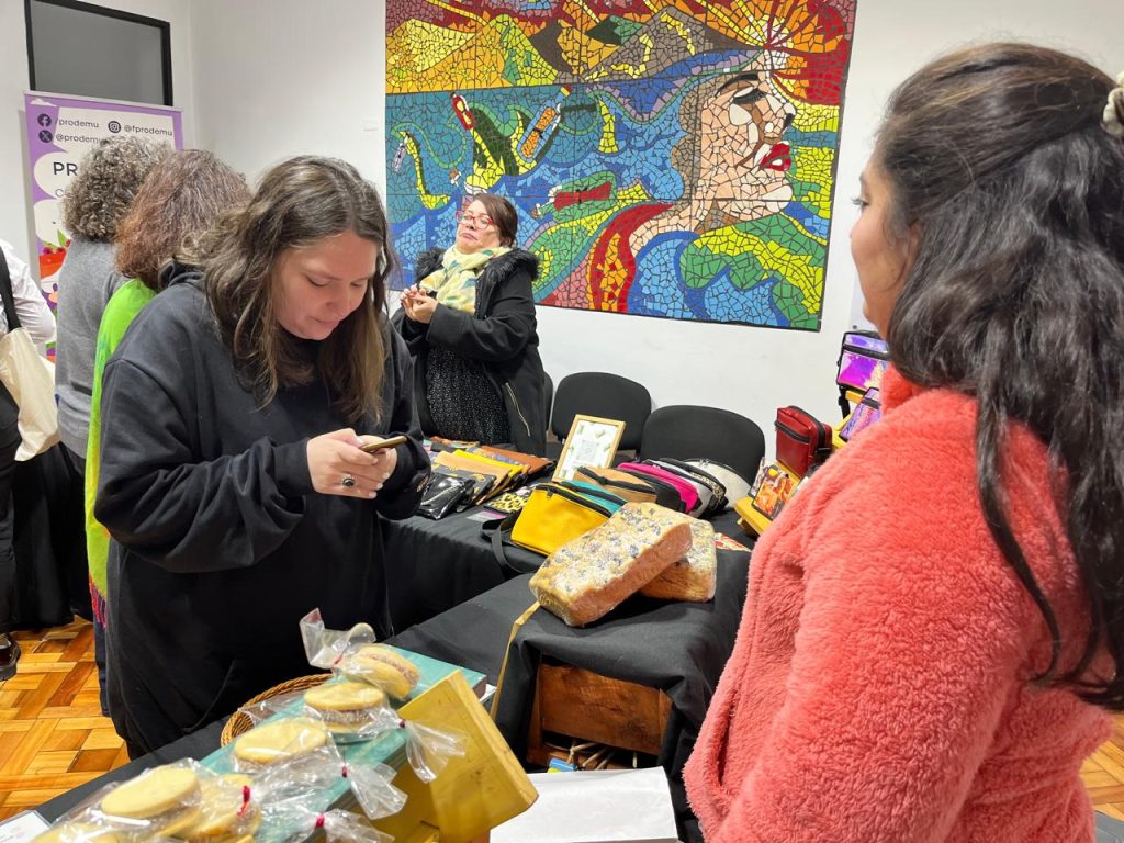 Siete emprendedoras dieron forma a la segunda jornada de Mercadito Prodemu en el edificio de Agustinas 1389 en Santiago. Las participantes de la Fundación pudieron compartir sus contactos y comercializar sus productos, entre ellos: Huevos, pan, empanadas, dulces y más.