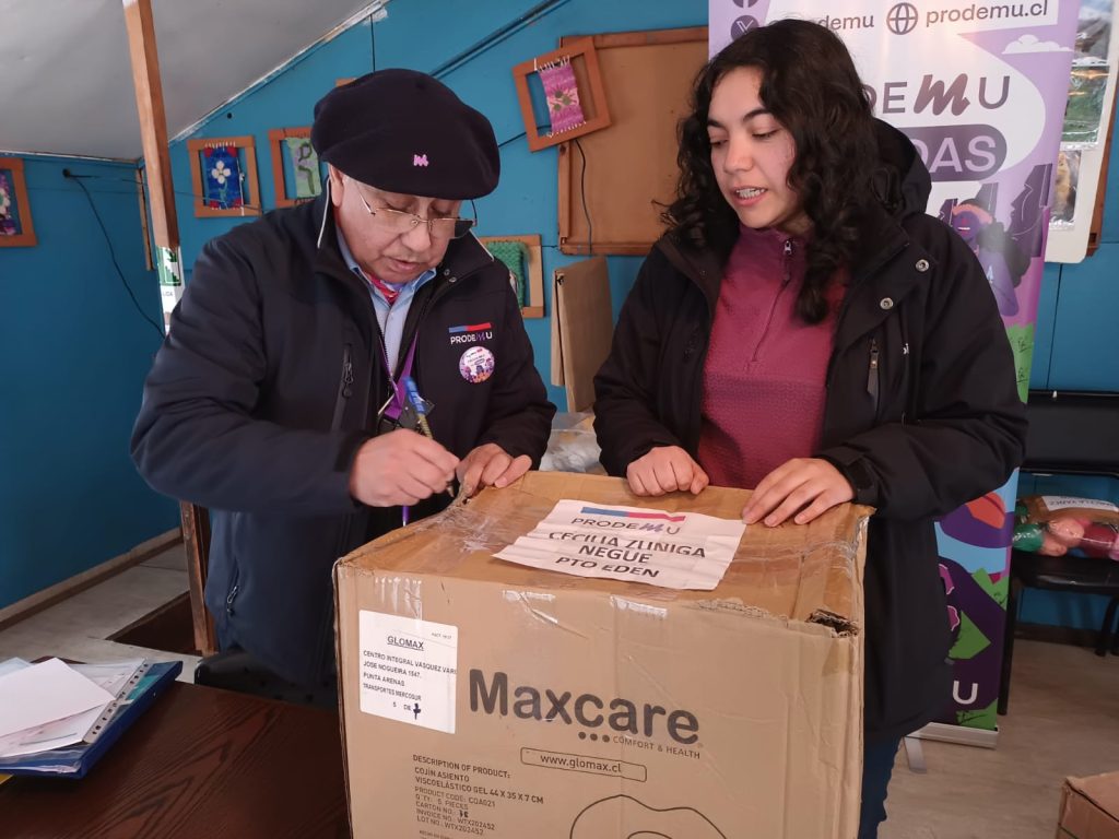 Unos de los compromisos asumidos por Ingrid Álvarez Jiménez, directora regional de Prodemu y el equipo provincial, fue que, al finalizar el proceso formativo, irían presencialmente a hacerle entrega de las compras producto del plan de negocio. Fue así como junto al gestor de formación y capacitación Víctor Gutiérrez, la directora regional viajó a Puerto Edén para conversar con las mujeres y hacer entrega de las compras, que aportarán a mejoras en sus emprendimientos.
