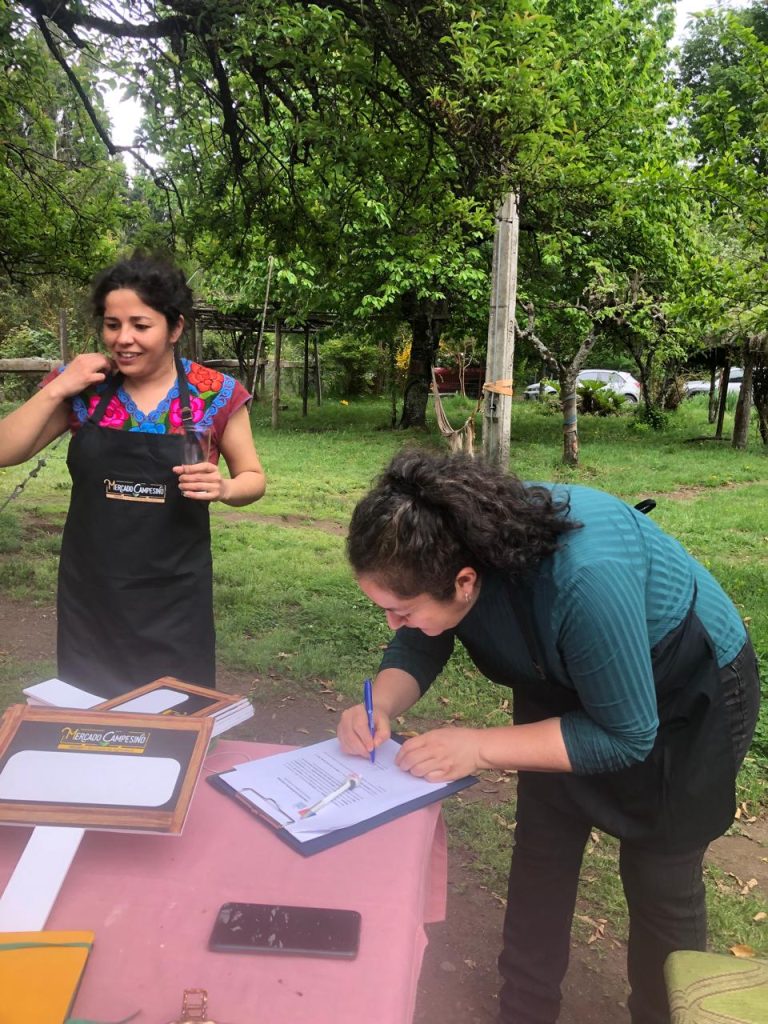 En dicha jornada, este grupo del programa de Mujeres Rurales procedió a la firma del acta de entrega de los productos adquiridos en el marco de Mercados Campesinos del programa de comercialización de Indap 2024, al que postularon y que se adjudicaron en Melipeuco.