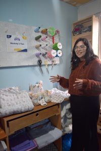 Andrea tal como Katherine Vásquez, fue parte del taller Juntas Crecemos. Sobre esta experiencia manifestó que, “me ayudó para tomar las riendas porque estaba esperando que mágicamente alguien me ayudara, también recojo las conversaciones con mis compañeras porque todas veníamos de abajo, con una idea. El fondo para la comercialización lo voy a utilizar para implementar un espacio de trabajo”, contó. Andrea, igualmente conjuga las labores de cuidado de sus hijos (Pascual de 2 y Emma de 8 años) con la necesidad de generar recursos económicos, porque es una de las maneras que encuentran muchas mujeres de conciliar ambos mundos.