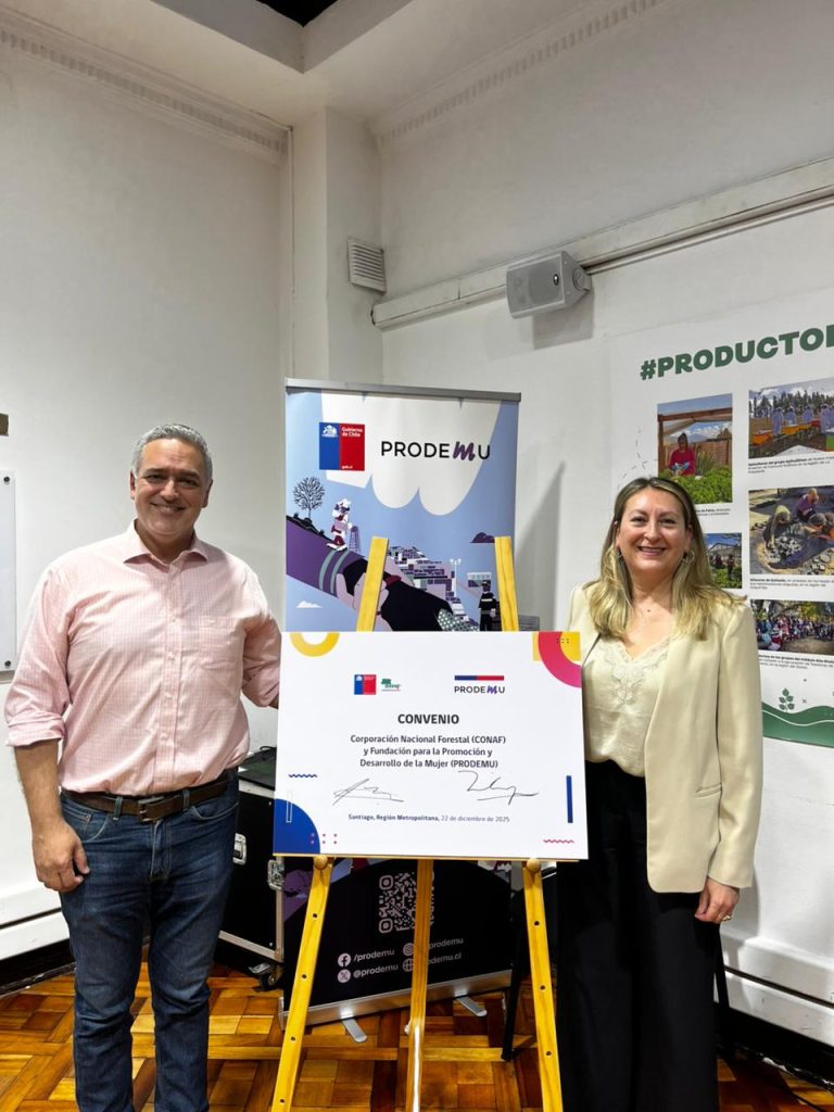 El convenio firmado por el director ejecutivo de Conaf, Rodrigo Illesca, y la directora ejecutiva nacional de Prodemu, Martha Vallejo Romero, considera que Conaf pueda entregar árboles nativos en actividades y eventos importantes, además de capacitación en protección del medio ambiente y prevención de incendios forestales, entre otras acciones que puedan ser de interés para las participantes de Prodemu en las distintas regiones.