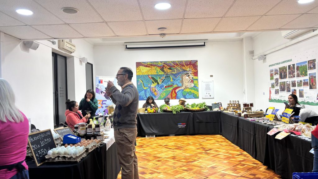 La jornada de comercialización, que tuvo como escenario el Salón Leonor Oyarzún del edificio institucional en Agustinas 1389, contó con la participación de 9destacadas emprendedoras, que ofrecieron una muestra representativa del talento rural y local, incluyendo vegetales frescos de cultivo propio, quesos artesanales, masas, miel y conservas, permitiendo a los asistentes acceder a productos de alta calidad sin intermediarios.