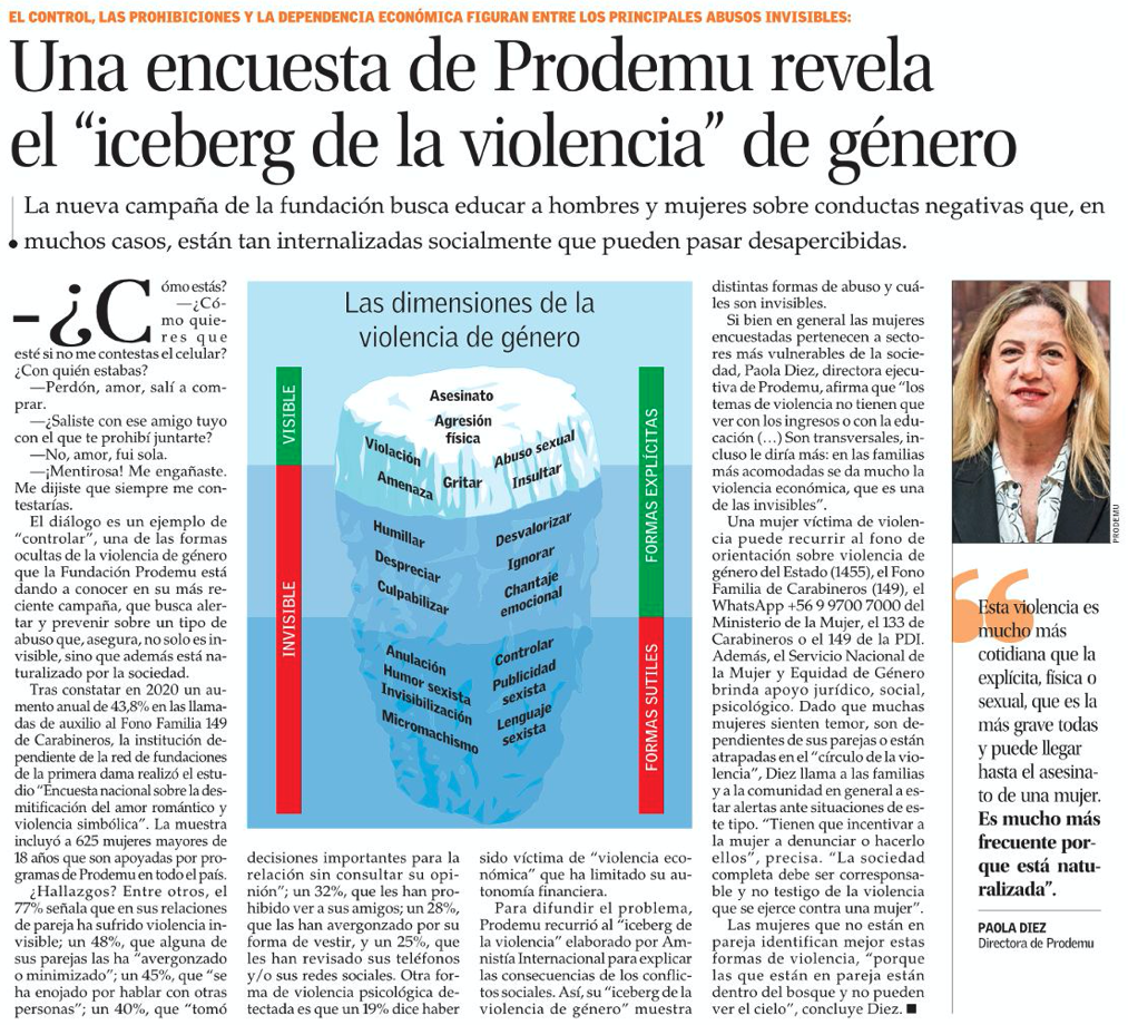 UNA ENCUESTA DE PRODEMU REVELA «EL ICEBERG DE LA VIOLENCIA» DE GÉNERO Leer más »